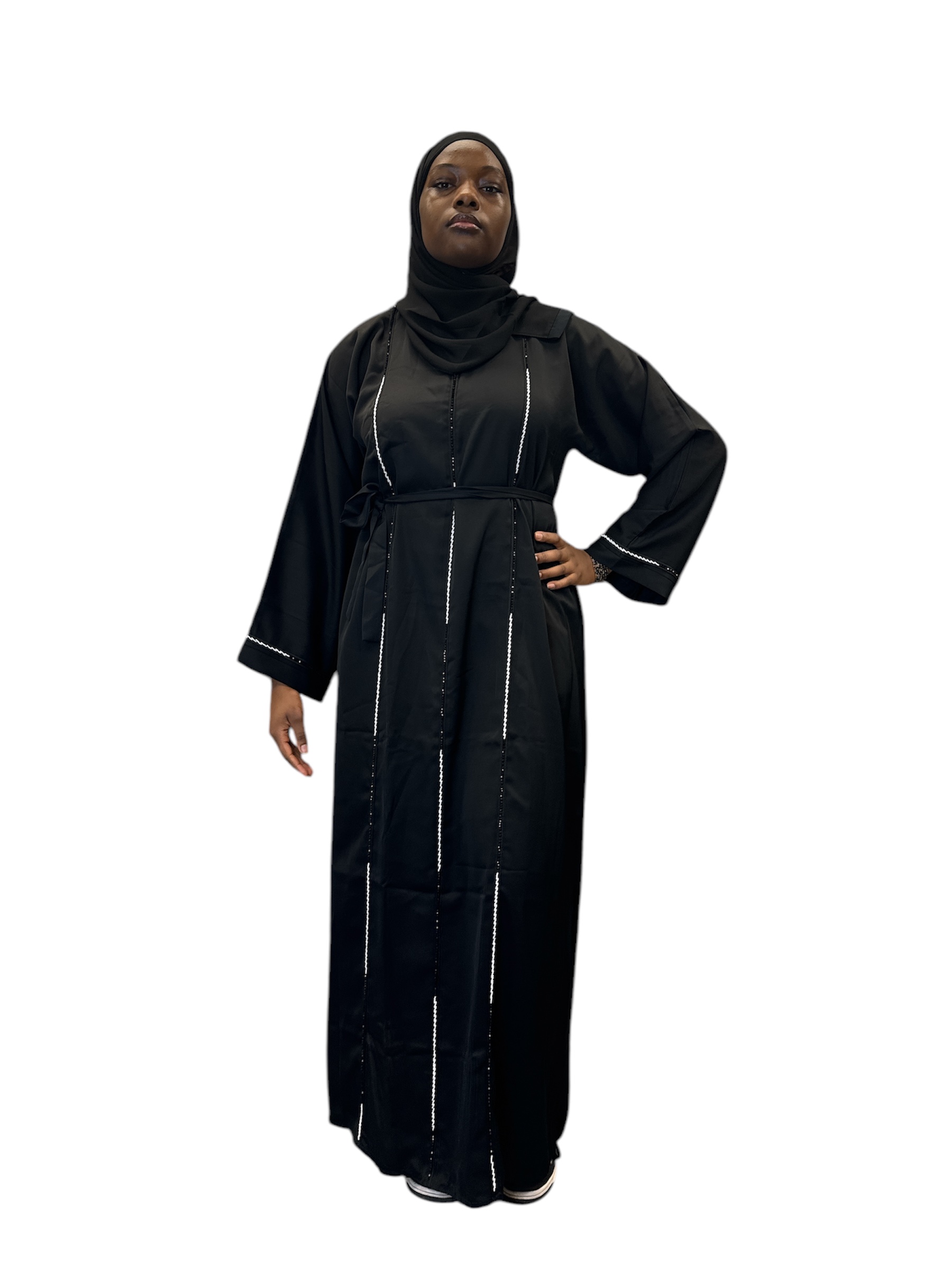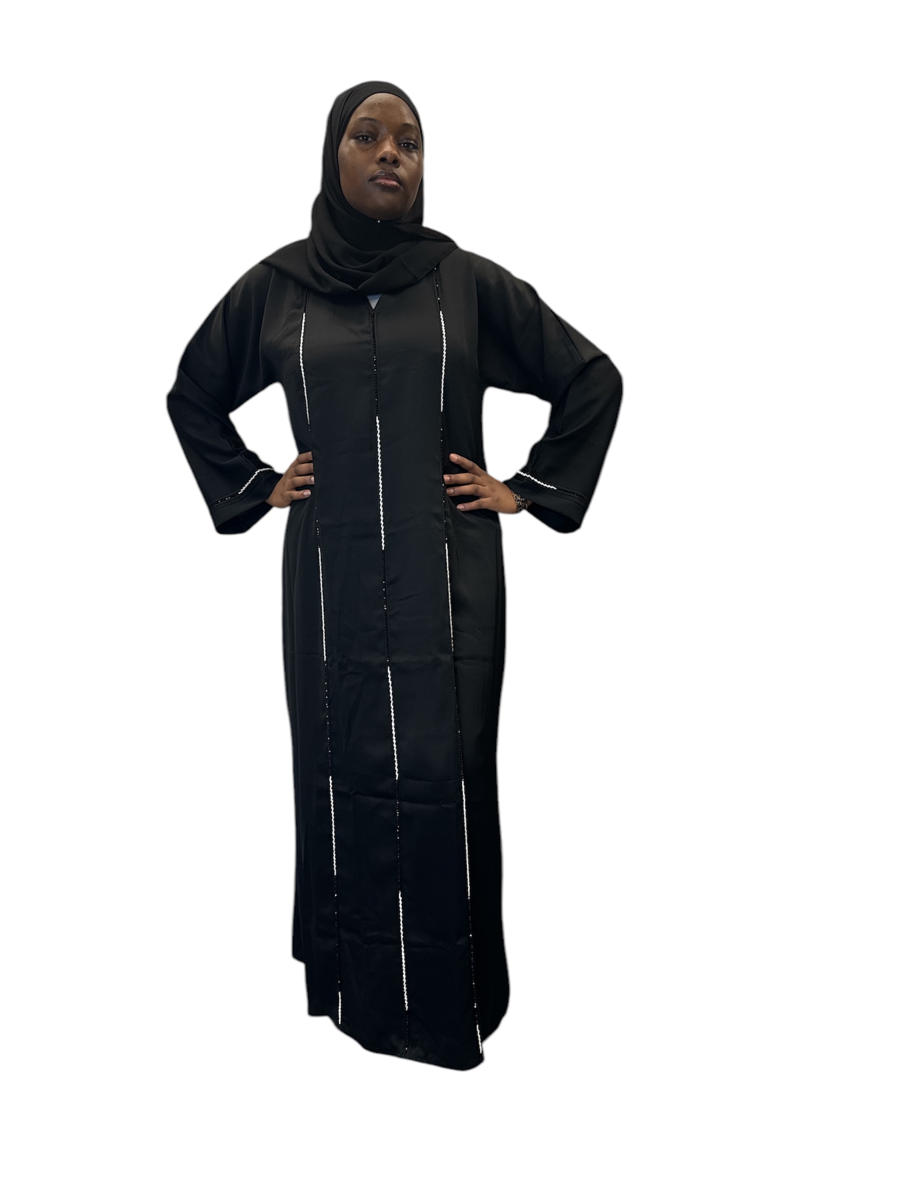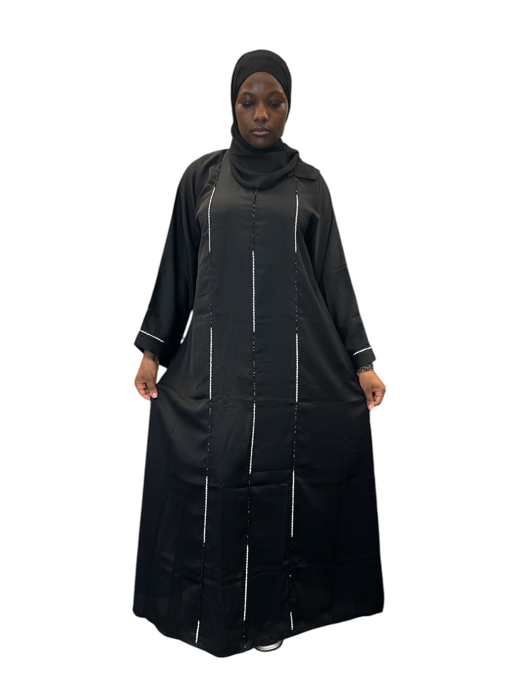 Nida Close Abaya: Black Design with Sleeve Stones Embellishments£35.00